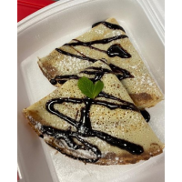 Clătite unse cu cremă de fistic, umplute cu kataifi, decorate cu cremă de ciocolată neagră... Detalii