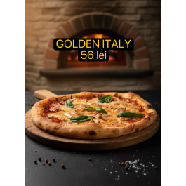 Blat pizza,sos pizza,mozzarella fior di latte,pancetta aumicanta,gorgonzola,ceapa,pecorino,busuioc,ulei de masline