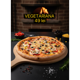 Blat pizza,sos pizza ,ciuperci,ardei rosii(kapia),porumb,masline,ceapa,mozzarela fior di latte,
