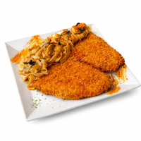 Șnițel porc cu tagliatelle cu ciuperci