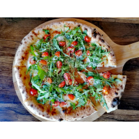 -blat pizza, sos pomodoro, mozzarella, prosciuto crudo, racola