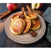 Clatită uriașă, mere cu scorțișoară trase la tigaie, iaurt de mere, topping de zahăr pudra... Detalii