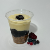 Clătită uriașă, cremă de vanilie specială, mac, vișine fără sâmburi, topping de vanilie.