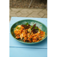 Spaghetti 200 g, cremă de dovleac 80 g, cremă de gătit 40 g, bacon 30 g, brânză de oaie 30... Detalii