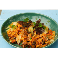 Spaghetti 200 g, carne de vită 120 g, cremă de gătit 50 g, trufe 20 g, brânză maturată 30... Detalii