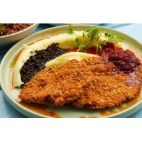 Cotlet alb 150 g, piure de cartofi cu ulei de trufe 150 g, linte neagră 100 g, dulceață de... Detalii