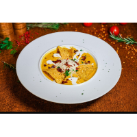 Foi tortilla 60 g, carne de pui 80 g, ceapă, usturoi, orez mexican 60 g, porumb, sos cașca... Detalii