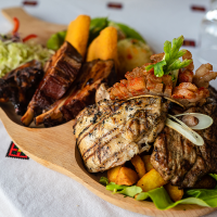 mușchi de vită 200, tomahawk de porc 250, piept de pui 200, slănină de cluj 100, mititei 2... Detalii