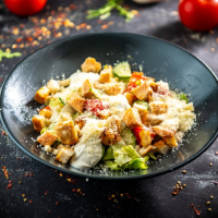 salată, ciuperci, roșii, castraveți, crutoane, parmezan, sos caesar saláta, gomba, parad... Detalii