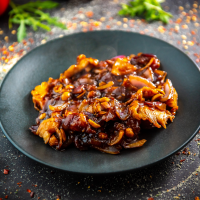 carne la alegere, ceapă, ghimbir, usturoi, ardei chili, alune, sos dulce, sos de soia, ore... Detalii