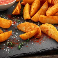 cartofi pai 170 g, piept de pui 80 g, cașcaval afumat 30 g, sos bbq, sos de maioneză, ceap... Detalii