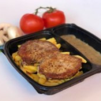 piept de pui sau cotlet de porc, bacon, ciuperci, sos alb (contine lapte), garnitură la al... Detalii