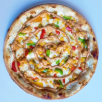 blat pizza, sos pizza, mozzarella, filata, piept de pui, porumb, ardei, jalapeno, sos mexi... Detalii