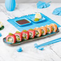 Orez (120g), somon (45g), ton (produs decongelat) (45g), avocado (20g), castravete (20g),... Detalii