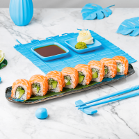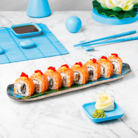 Orez (120g), surimi (produs decongelat) (40g), castravete (20g), avocado (20g), icre tobik... Detalii
