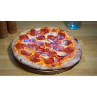 Blat Pizza 250 g ,Sos rosii 30 g ,Mozzarella 200 g ,Salam Picant 50 g , Ardei iute 40 g ,C... Detalii